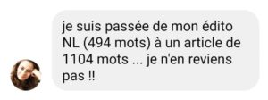 Alors pour faire connaitre mon activité, j’ai dû mettre en place des procédures pour gagner du temps. J’ai eu aussi besoin de m’organiser pour me libérer l’esprit. Avec ce cumul de missions, la charge de travail est devenue énorme! Alors, pour réussir à tout faire, j’ai été obligée d’optimiser ma stratégie de communication.