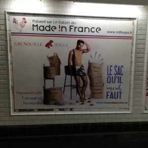 En prévision du salon made in France, j’ai eu l’opportunité d’un pack publicitaire pour le métro. Je me souviens de nos discussions sur le visuel et le texte. A ce moment-là, Choup m’a guidée pour me concentrer sur « qui verra ma pub ? « Et « choisir un message adapté, un seul message ». Cela m’a beaucoup aidée à trier mes idées sans rien m’imposer.